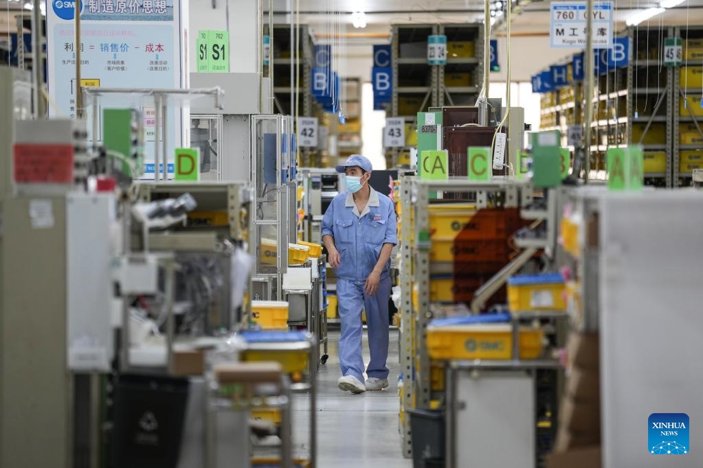 A staff member works at a factory of SMC Corporation in Beijing Economic-Technological Development Area of Beijing, capital of China, June 4, 2022. (Xinhua/Peng Ziyang)