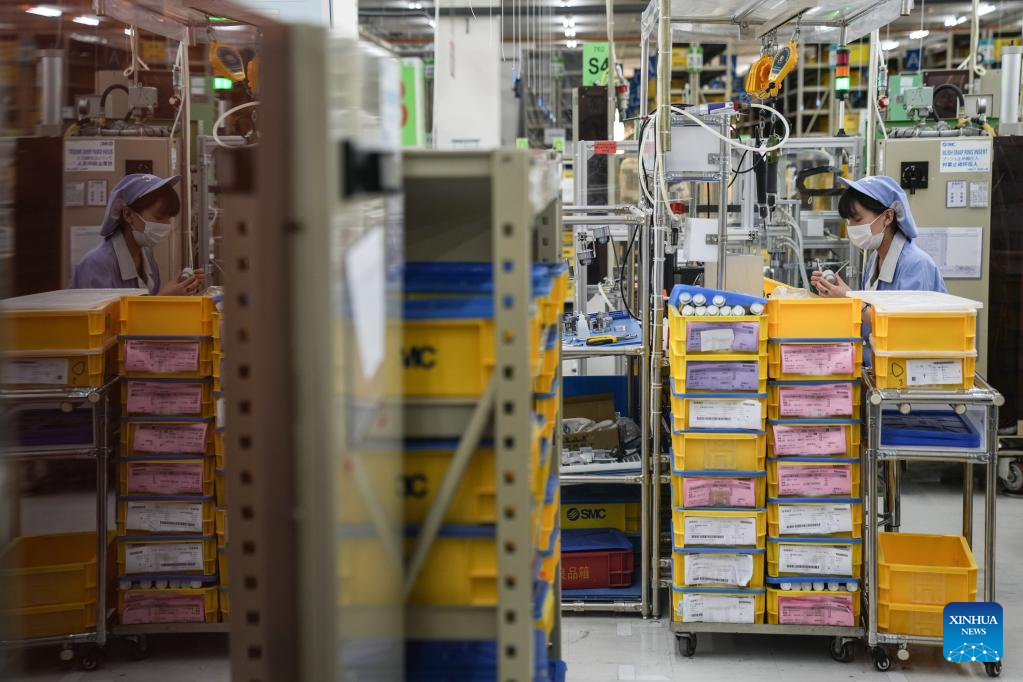 Staff members work at a factory of SMC Corporation in Beijing Economic-Technological Development Area of Beijing, capital of China, June 4, 2022. (Xinhua/Peng Ziyang)