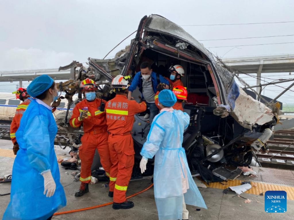 BEIJING, June 4 (Xinhua) -- A train driver died and eight others were injured after a bullet train derailed at around 10:30 a.m. on Saturday in Rongjiang County, southwest China's Guizhou Province, according to China State Railway Group Co., Ltd.