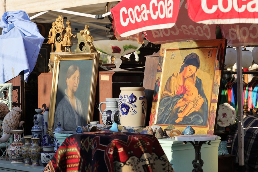 Vintage items are seen at a flea market exhibition in Beirut, Lebanon, on June 3, 2022. (Xinhua/Liu Zongya)■