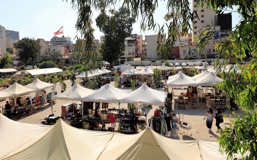 People visit a flea market in Beirut, Lebanon, June 3, 2022. The five-day flea market kicked off on Wednesday. (Xinhua/Liu Zongya)