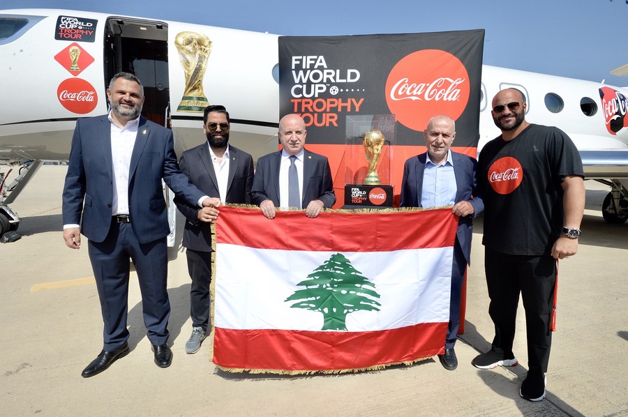 The World Cup trophy, accompanied by Brazilian football legend Juliano Belletti, was welcomed by Lebanese Minister of Youth and Sports George Kallas, Lebanon's Football Association President Hachem Haidar, and Lebanese football stars at Beirut Airport.