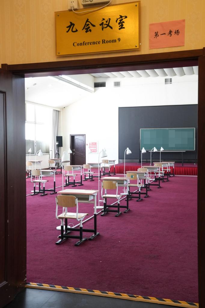 Photo taken on June 5, 2022 shows an exam site of the college entrance exam at the quarantined area in Chaoyang District, Beijing, capital of China. China's national college entrance exam for 2022, also known as Gaokao, will begin on June 7. Beijing has set up specific exam sites for examinees at the quarantined area as COVID-19 precaution measures. (Xinhua/Peng Ziyang)