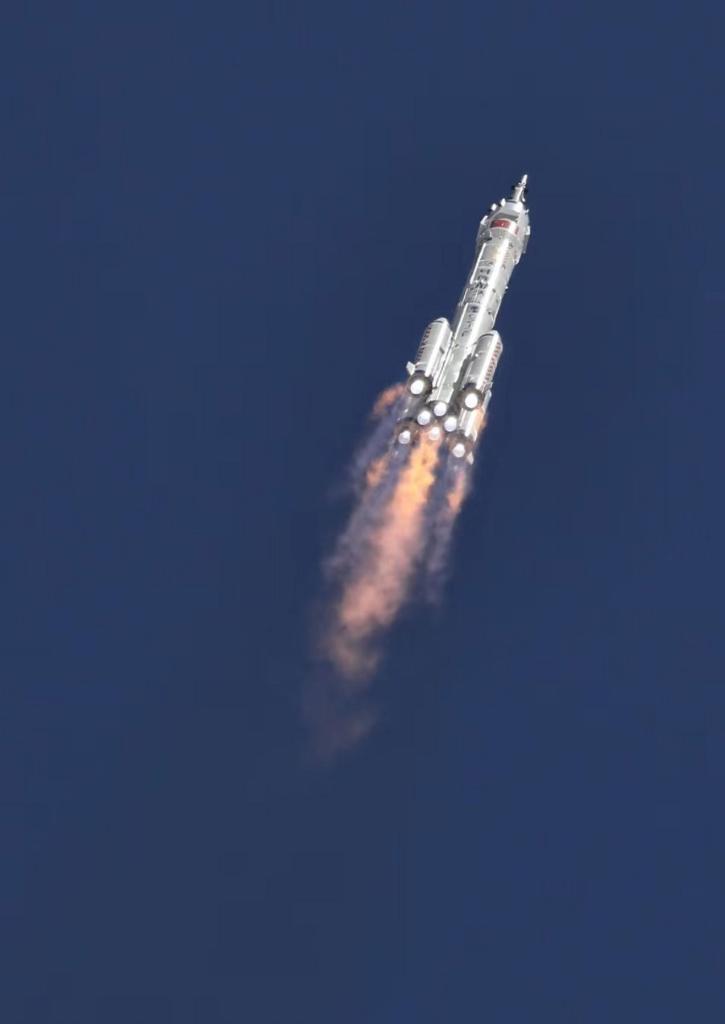 The crewed spaceship Shenzhou-14, atop a Long March-2F carrier rocket, is launched from the Jiuquan Satellite Launch Center in northwest China, June 5, 2022. About 577 seconds after the launch, Shenzhou-14 separated from the rocket and entered its designated orbit. The crew members are in good shape and the launch is a complete success. (Xinhua/Cai Yang)