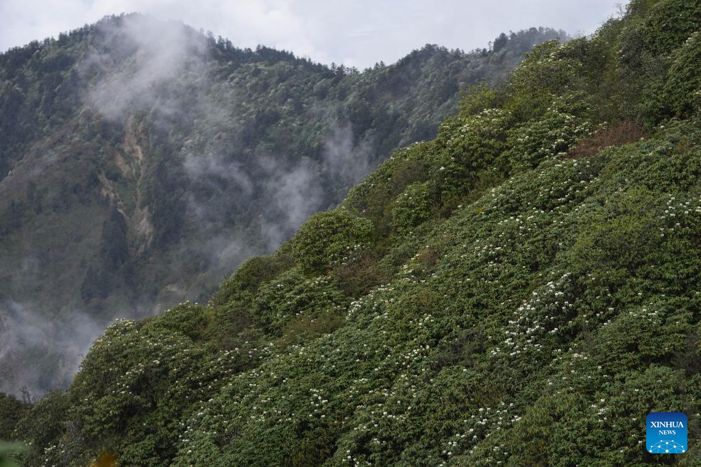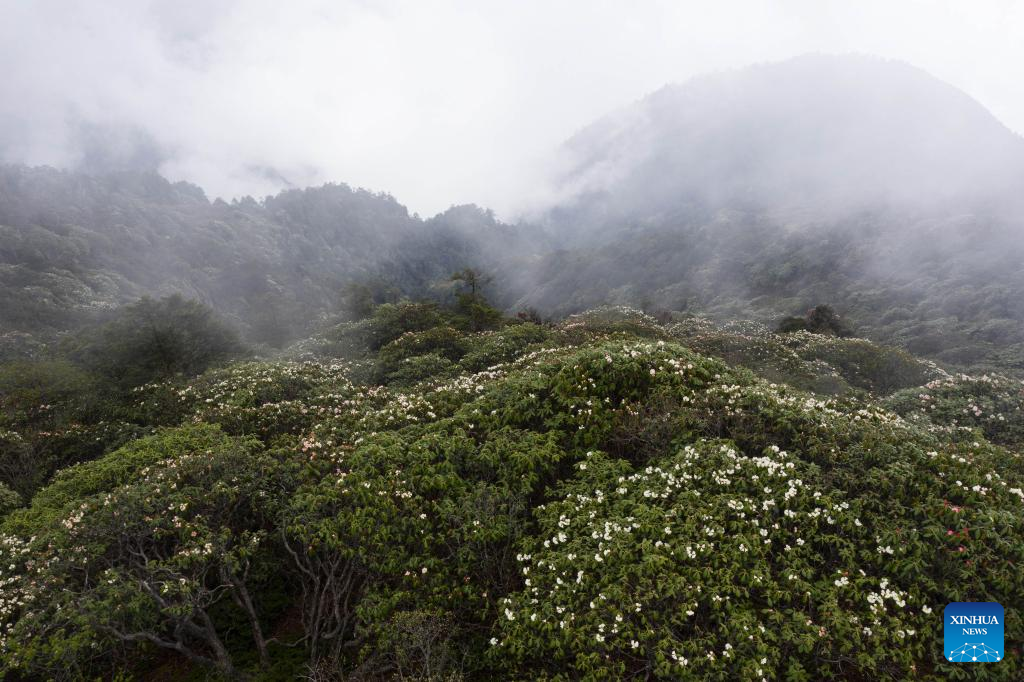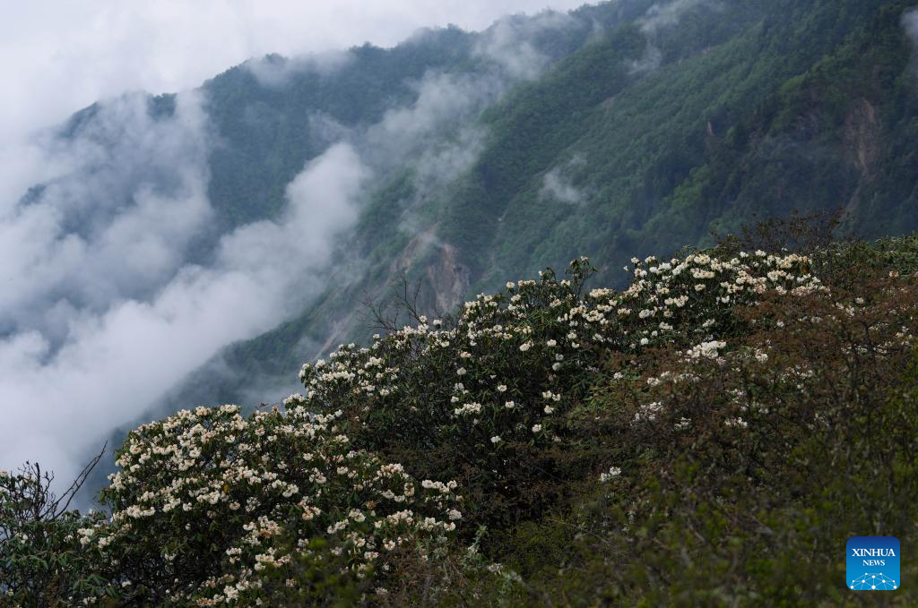 Blossoms of alpine azalea are seen at Giant Panda National Park in Longmen Mountains in southwest China's Sichuan Province, June 5, 2022. (Xinhua/Jiang Hongjing)