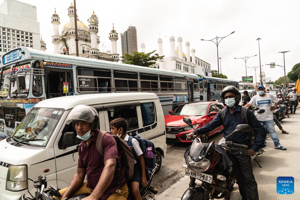 Vehicles queue for fuel on a street in Colombo, Sri Lanka on June 6, 2022. Sri Lankan Prime Minister Ranil Wickremesinghe said here on Tuesday the next three weeks would be tough as the nation is facing a severe economic crisis, urging citizens to use fuel and gas sparingly. (Xinhua/Tang Lu)