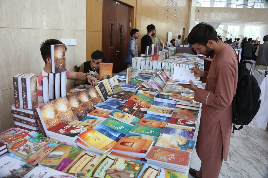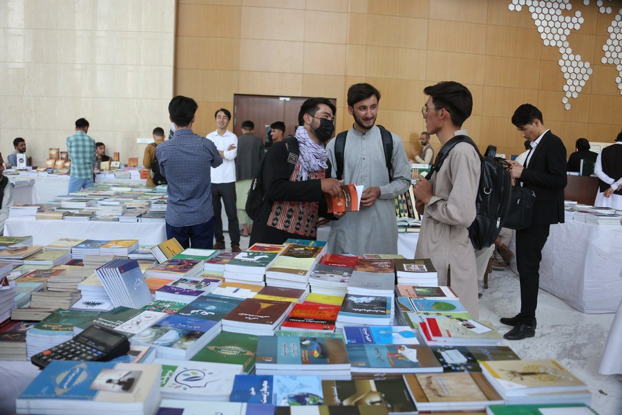 Photo taken on June 5, 2022 shows a book fair held at Kabul University in Kabul, Afghanistan. (Photo by Saifurahman Safi/Xinhua)