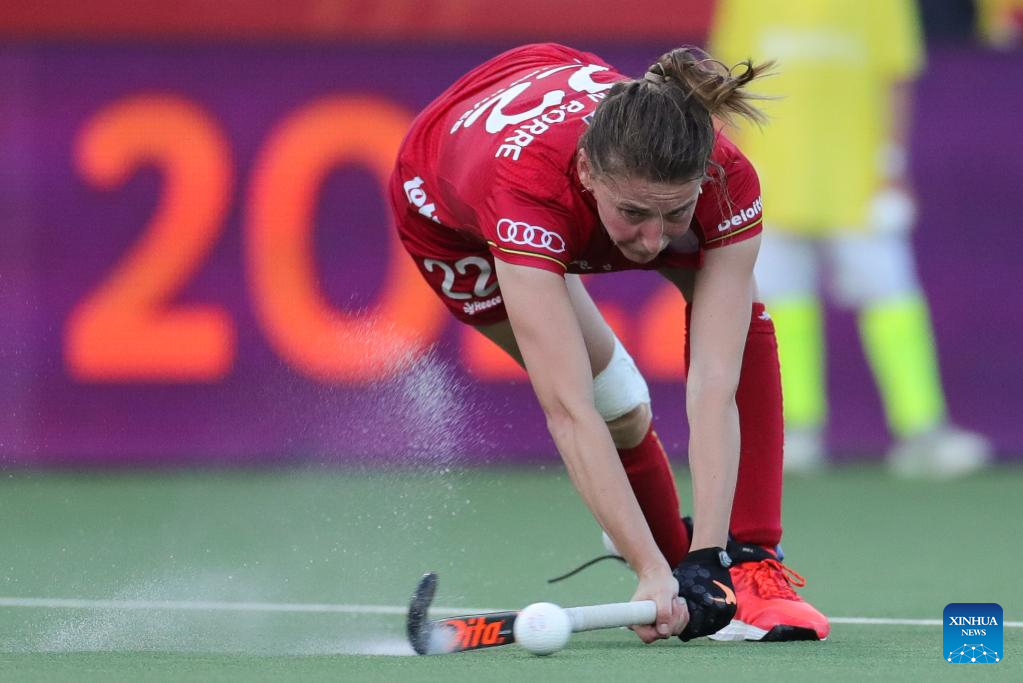 Vanden Borre of Belgium competes during the FIH Hockey Pro League match between Belgium and China in Antwerp, Belgium, June 7, 2022. Belgium women's hockey team beat Chinese women's hockey team by 3-1. (Xinhua/Zheng Huansong)
