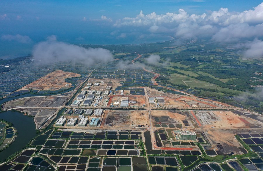 Aerial photo taken on June 1, 2022 shows a view of Fengjiawan Modern Fishery Industrial Park under construction in Wenchang, south China's Hainan Province.(Xinhua/Guo Cheng)