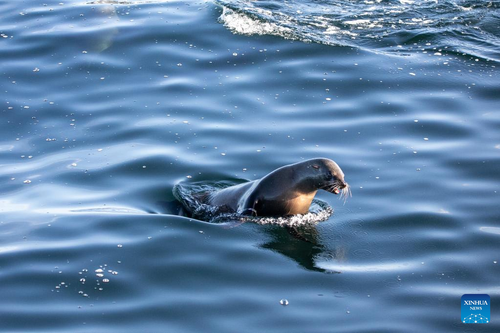 A Cape fur seal swims in the sea near Simon's Town in Cape Town, South Africa, on June 9, 2022. (Xinhua/Lyu Tianran)