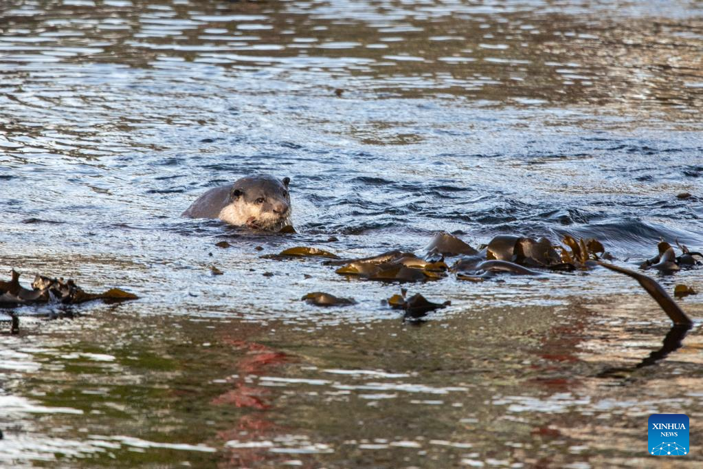 A sea otter swims in Simon's Town harbor in Cape Town, South Africa, on June 9, 2022. (Xinhua/Lyu Tianran)