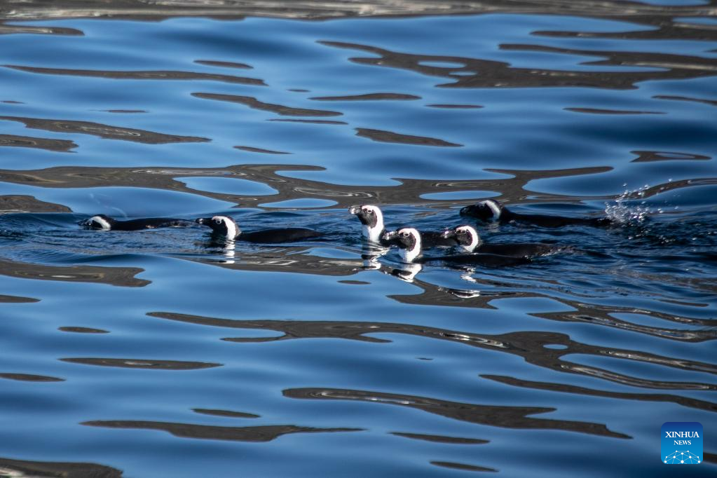 African penguins swim off the coast of Simon's Town in Cape Town, South Africa, on June 9, 2022. (Xinhua/Lyu Tianran)