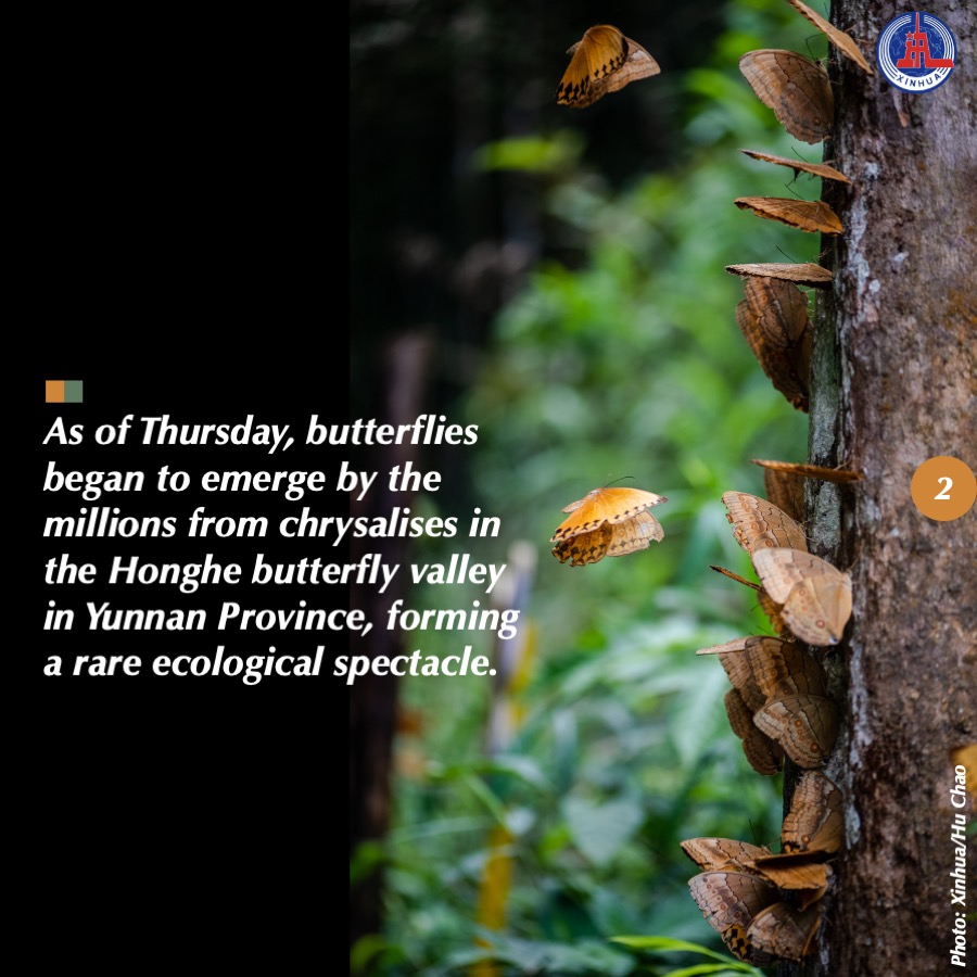 BEIJING, June 11 (Xinhua) -- Over 100 million butterflies! A spectacular "butterfly explosion" has been observed in southwest China's biodiverse Yunnan Province. Here are some quick facts.■