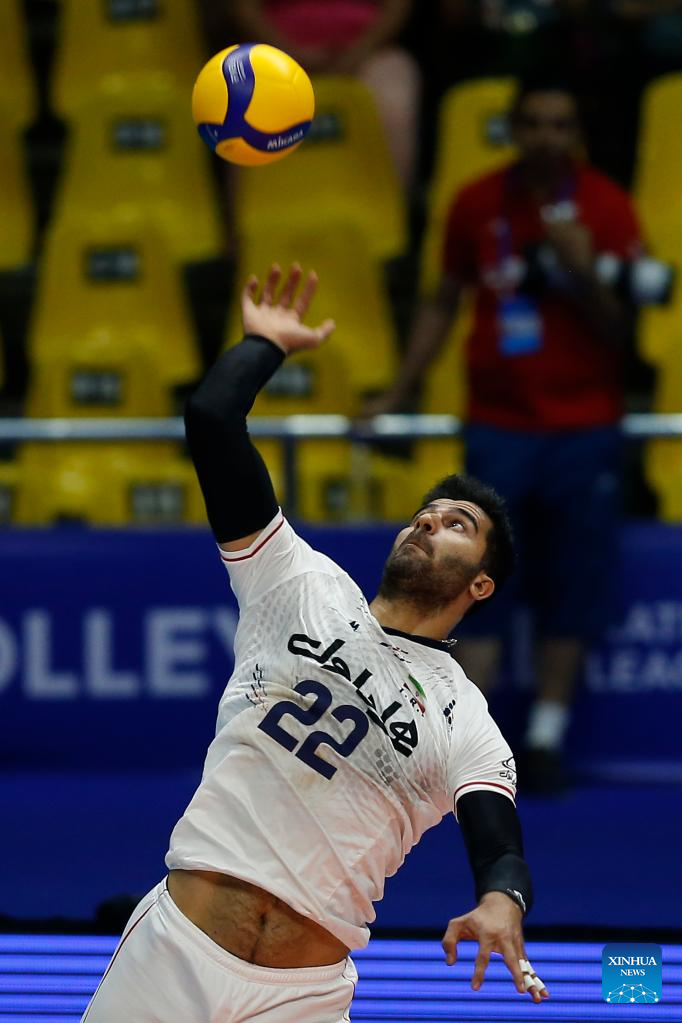 Iran's Amirhossein Esfandiar serves during the FIVB Volleyball Nations League Men's Pool 1 match between the Netherlands and Iran in Brasilia, Brazil, June 10, 2022. (Photo by Lucio Tavora/Xinhua)