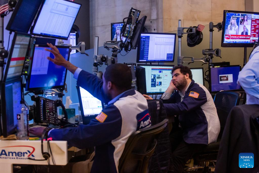 The Dow Jones Industrial Average tumbled 876.05 points, or 2.79 percent, to 30,516.74. The S&P 500 dropped 151.23 points, or 3.88 percent, to 3,749.63. The Nasdaq Composite Index shed 530.79 points, or 4.68 percent, to 10,809.23. (Photo by Michael Nagle/Xinhua)