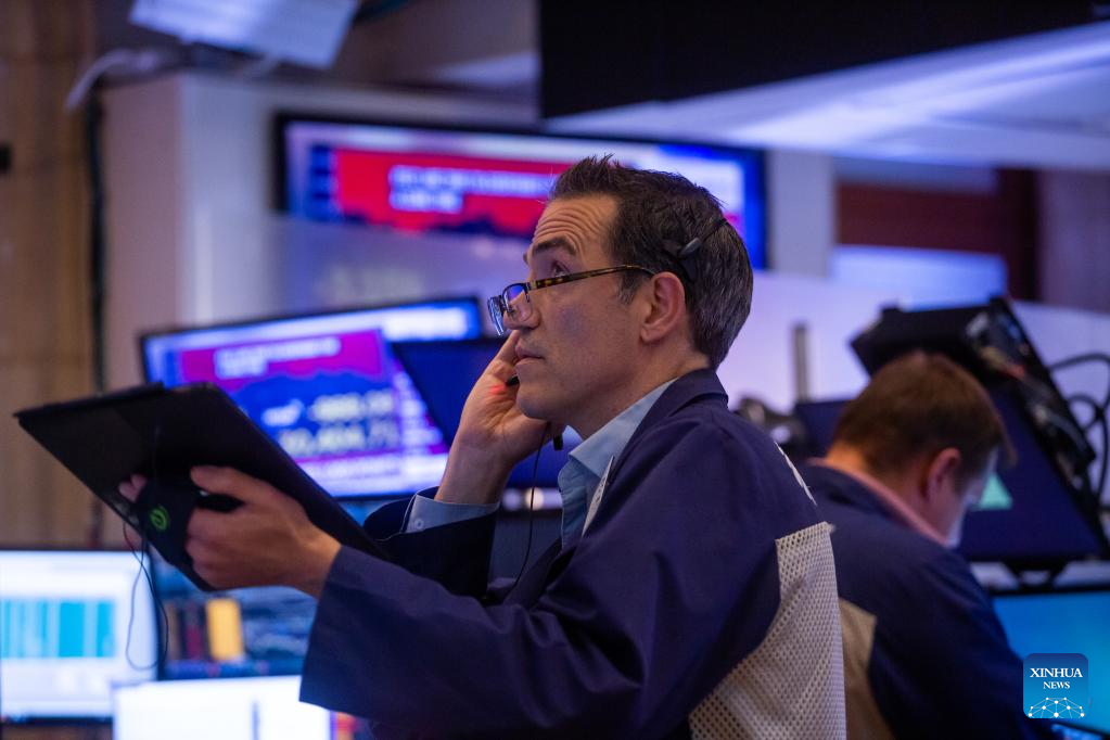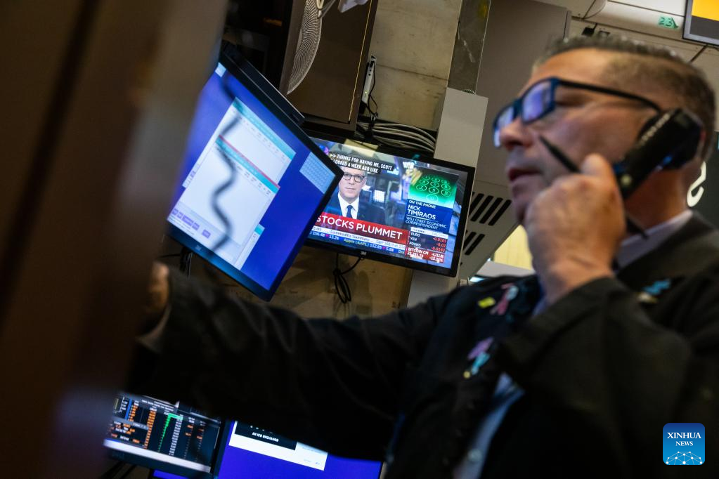 Traders work at the New York Stock Exchange (NYSE) in New York, the United States, June 13, 2022. U.S. stocks fell sharply on Monday as investors continued to dump risky assets amid surging inflation.