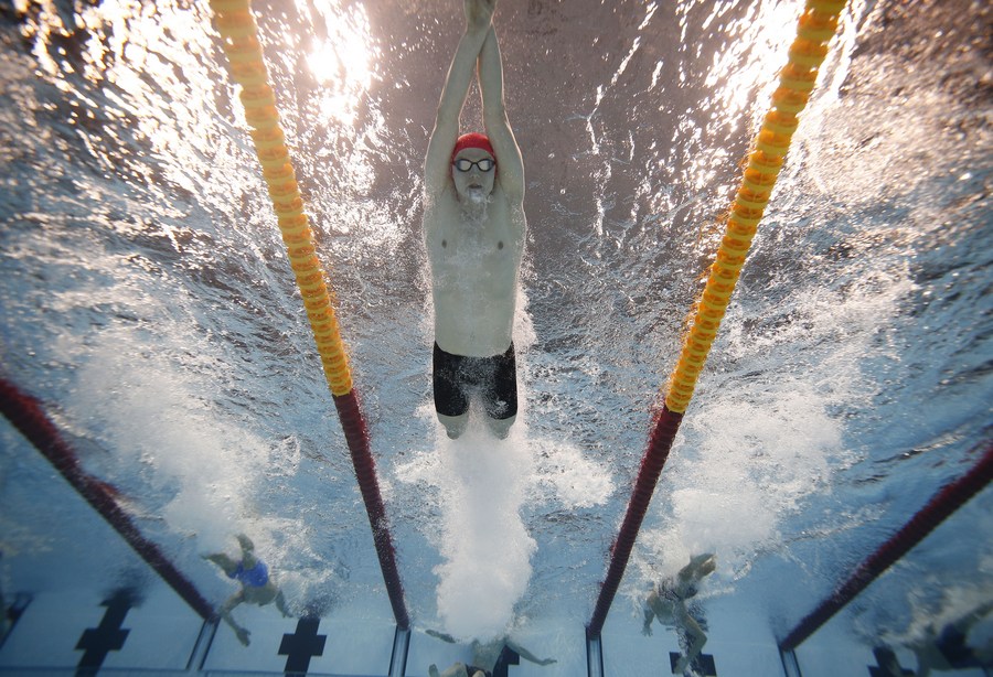 Duncan Scott competes in the men's 4x200m freestyle relay final at Tokyo 2020 Olympic Games, July 28, 2021. (Xinhua/Ding Xu)