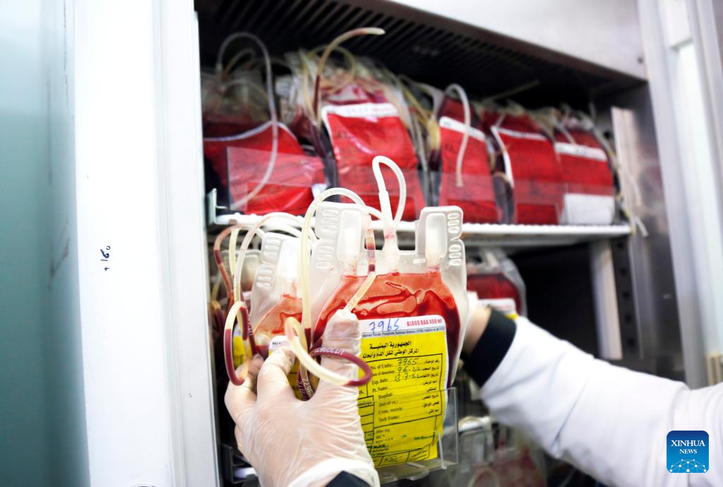 A medical staff member puts bags of donated blood in a refrigerator at the National Center for Blood Transfusion and Research, in Sanaa, Yemen, on June 14, 2022. Hundreds of residents in Sanaa heeded the call from the local medical authorities and came to the blood transfusion center to donate blood on Tuesday, which marks World Blood Donor Day. (Photo by Mohammed Mohammed/Xinhua)