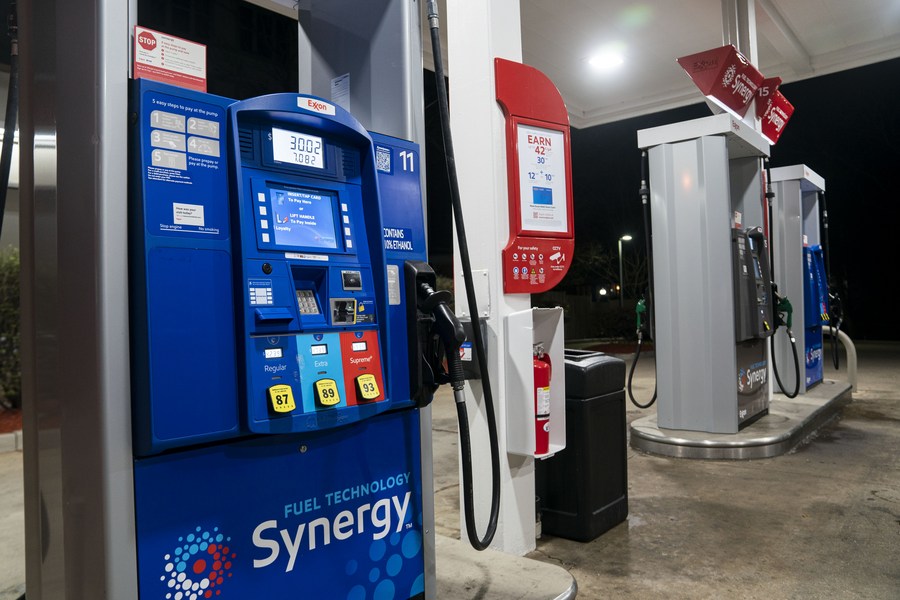 Photo taken on March 31, 2022 shows a gas station in Arlington, Virginia, the United States. (Xinhua/Liu Jie)