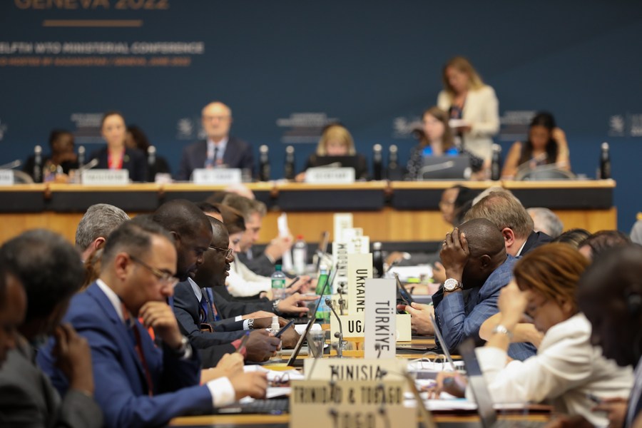 Photo taken on June 15, 2022 shows a view of the World Trade Organization's (WTO) 12th Ministerial Conference (MC12) in Geneva, Switzerland. (WTO/Handout via Xinhua)