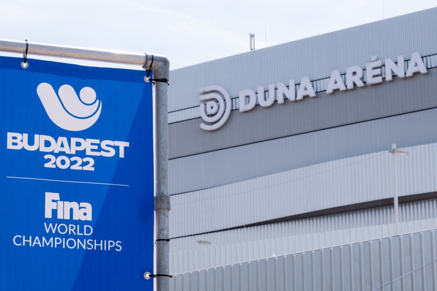 Photo from June 15, 2022 shows the Duna Arena, the main venue for the 19th FINA World Championships, in Budapest, Hungary. (Photo by Attila Volgyi/Xinhua)