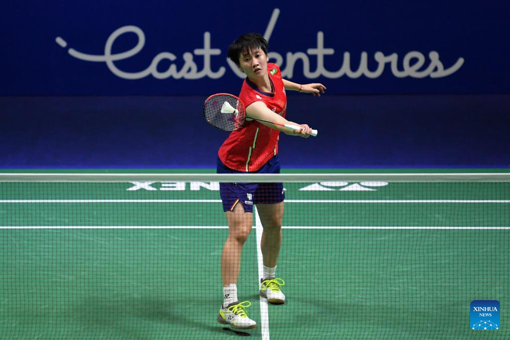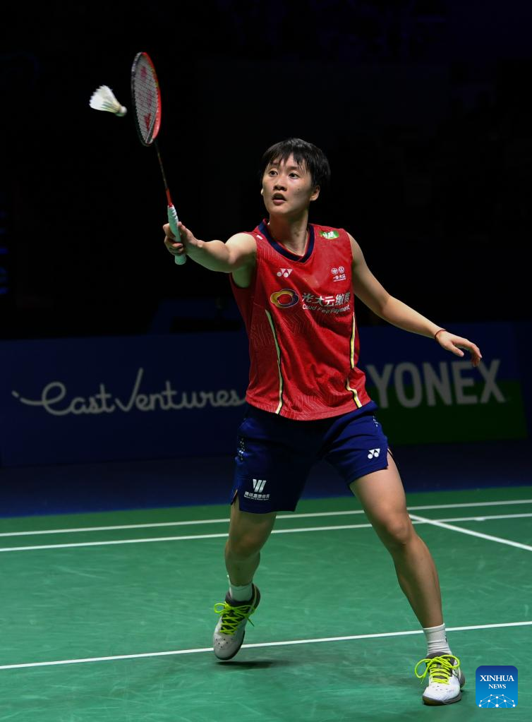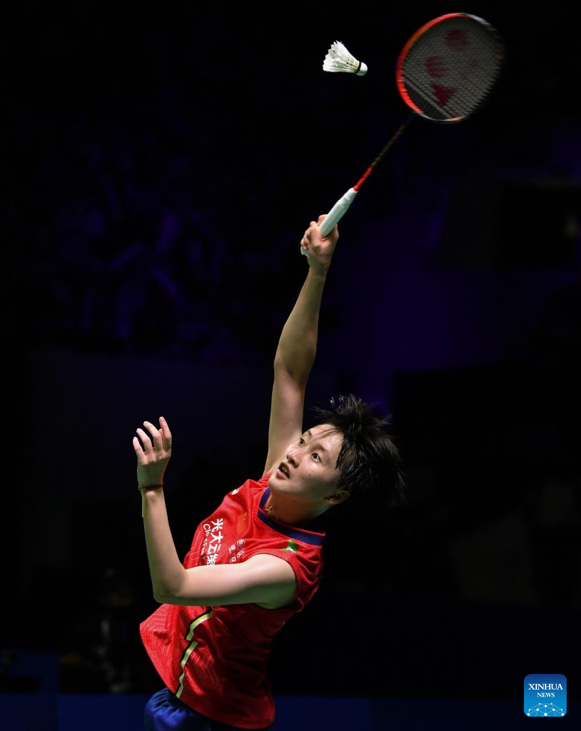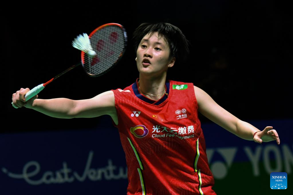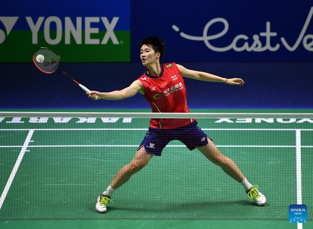 China's Chen Yufei hits a return during the women's singles semifinal against Chinese Taipei's Tai Tzu-Ying at Indonesia Open 2022 at the Istora Senayan sports stadium in Jakarta, Indonesia, June 18, 2022. (Xinhua/Xu Qin)