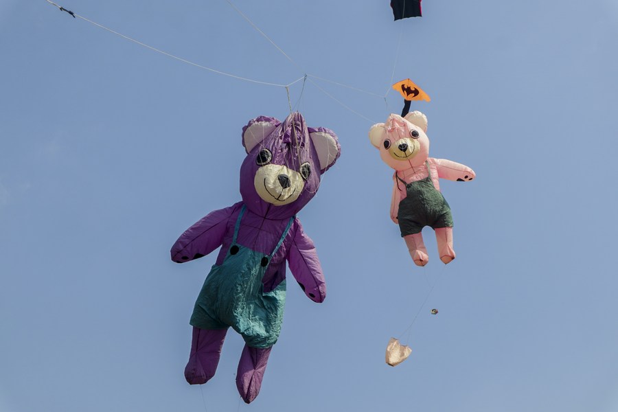Bear-shaped kites fly in the sky during the World Kite Festival in Bogor, West Java, Indonesia, June 19, 2022. (Photo by Sandika Fadilah/Xinhua)