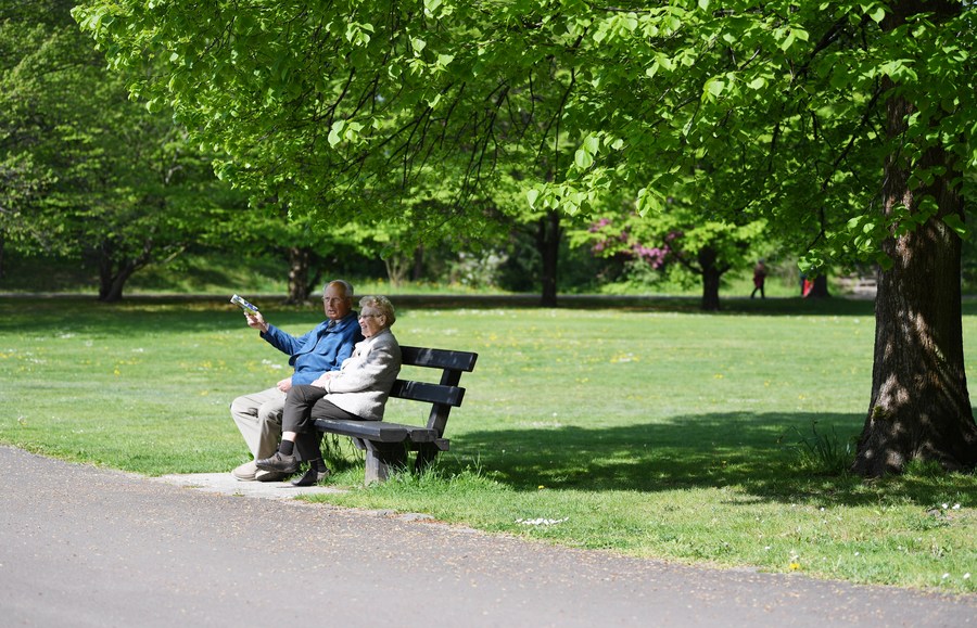 People take a rest at Britzer Garten in Berlin, capital of Germany, May 6, 2022. (Xinhua/Ren Pengfei)