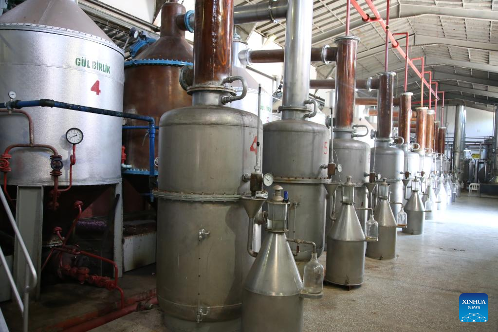Photo taken on June 15, 2022 shows a rose product factory in Isparta, a southern province known as the "land of roses", in Turkey. (Xinhua/Li Zhenbei)
