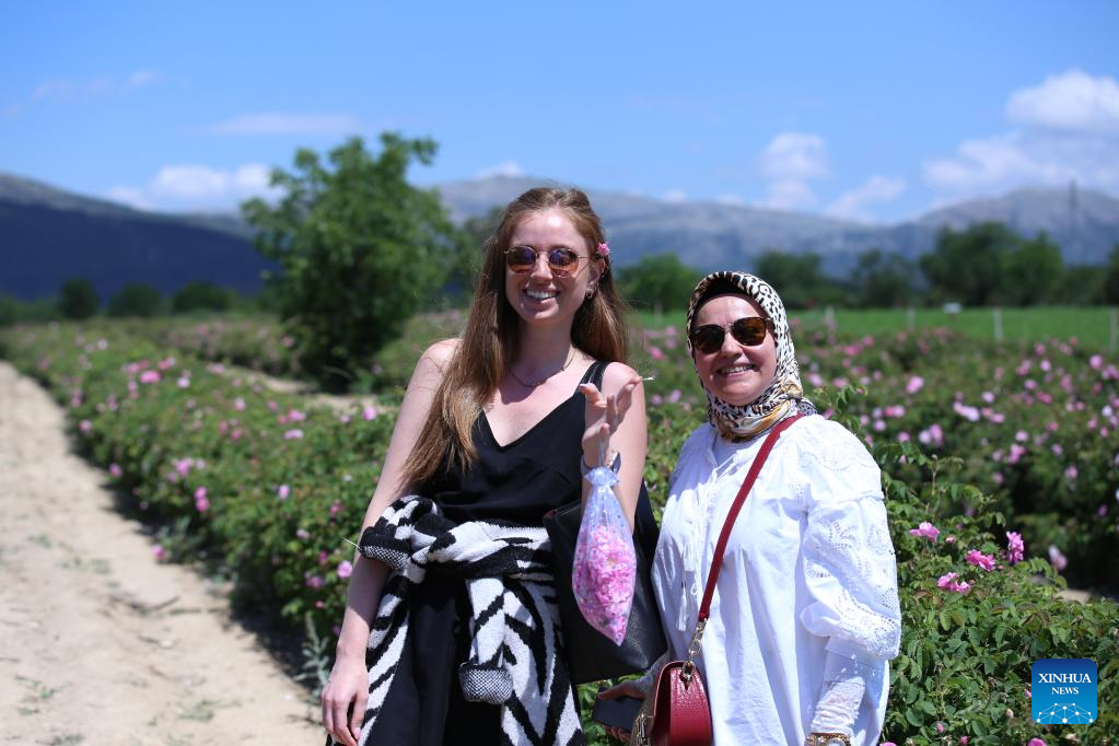 Tourists visit a rose garden in Isparta, a southern province known as the "land of roses", in Turkey, on June 15, 2022. (Xinhua/Li Zhenbei)