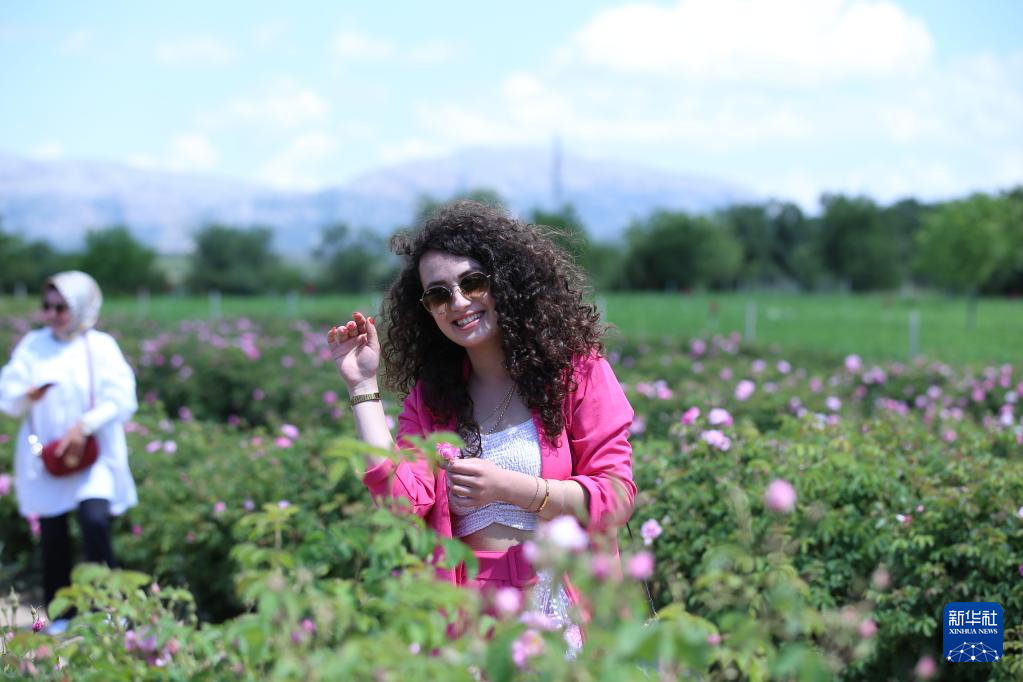 A tourist poses in a rose garden in Isparta, a southern province known as the "land of roses", in Turkey, on June 15, 2022. (Xinhua/Li Zhenbei)
