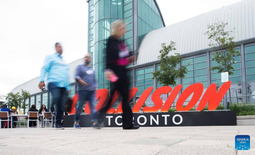 People attend the opening night event of the 2022 Collision Conference in Toronto, Canada, on June 20, 2022. Participants from over 140 countries and regions are expected to attend this technology conference here from June 20 to 23. (Photo by Zou Zheng/Xinhua)