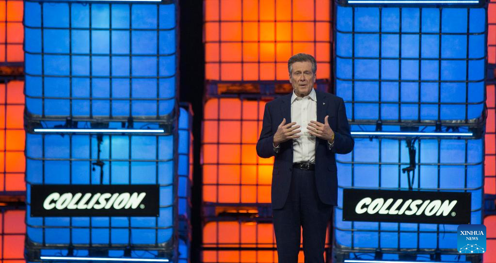 The Mayor of Toronto John Tory speaks during the opening night event of the 2022 Collision Conference in Toronto, Canada, on June 20, 2022. Participants from over 140 countries and regions are expected to attend this technology conference here from June 20 to 23. (Photo by Zou Zheng/Xinhua)