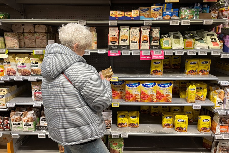 A consumer shops at a supermarket in Brussels, Belgium, April 1, 2022. (Xinhua/Zheng Huansong)