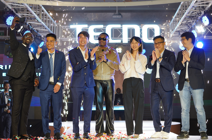 TECNO executives in Kenya and guests attending the launching event of the newest TECNO smartphones pose for photos in Nairobi, Kenya, on June 20, 2022. (Provided by TECNO)