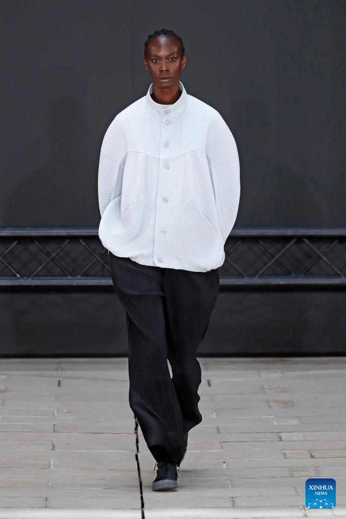 A model presents a creation from the Spring/Summer 2023 Men's collection of Issey Miyake during the Paris Fashion Week, in Paris, France, June 23, 2022. (Photo by Piero Biasion/Xinhua)