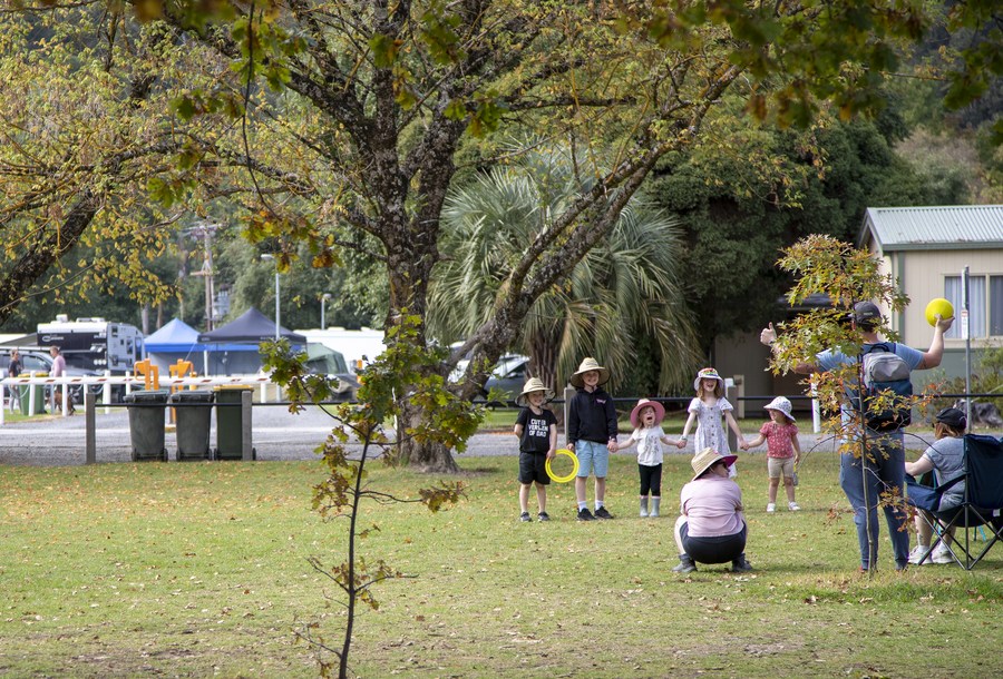 Children take photos in Warburton, a rural area near Melbourne, Australia on April 15, 2022. (Xinhua/Bai Xuefei)