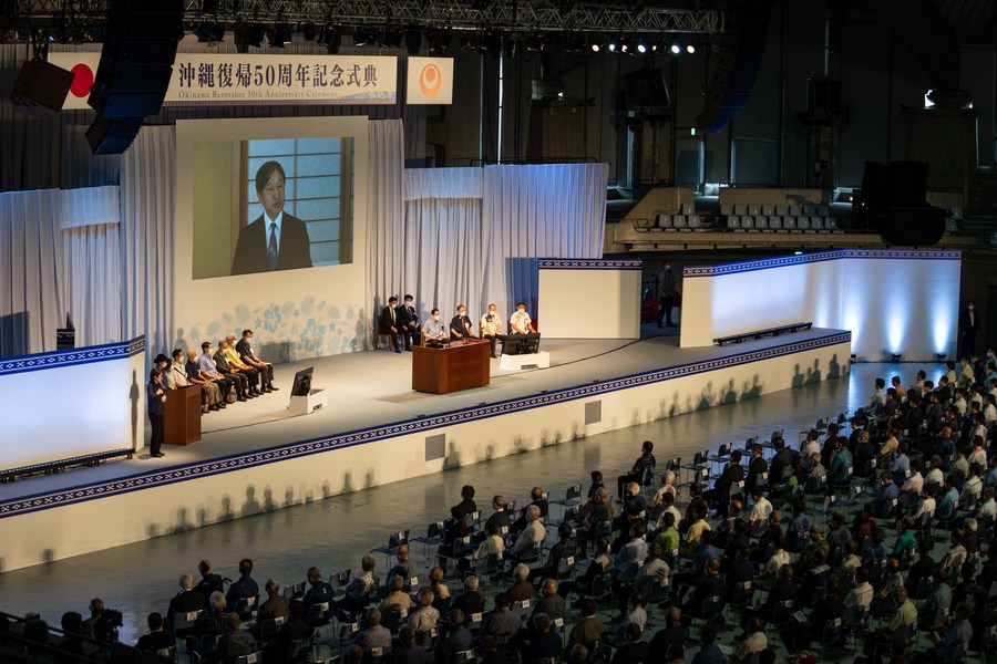 A ceremony marking the 50th anniversary of Okinawa's reversion to Japan from the control of the United States is held in Okinawa, Japan, on May 15, 2022. (Xinhua/Zhang Xiaoyu)