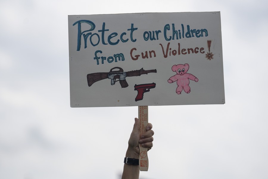 People gather during a rally decrying rising gun violence while urging politicians to take action in Washington, D.C., the United States, June 11, 2022. (Xinhua/Liu Jie)