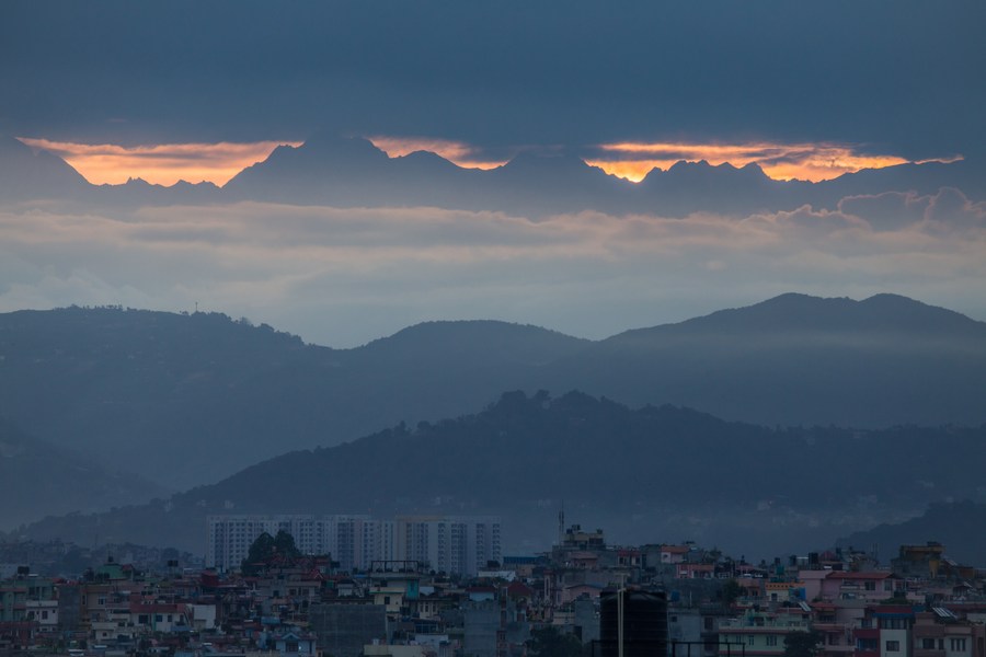Sunrise seen in monsoon rain in Lalitpur, Nepal, June 23, 2022. (Photo by Hari Maharjan/Xinhua)