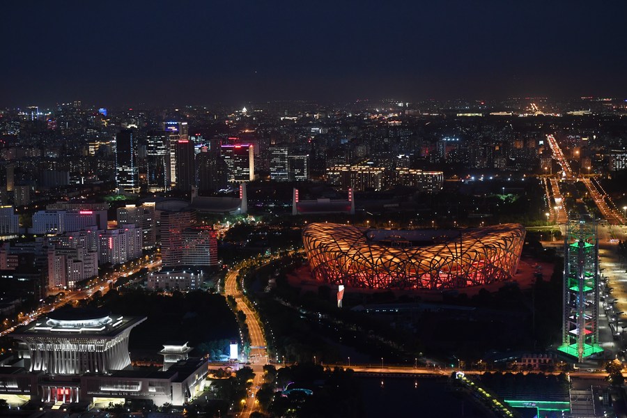 Landmarks of the Chinese capital of Beijing shine for the 36th Olympic Day on June 23, 2022. (Xinhua/Zhang Chenlin)