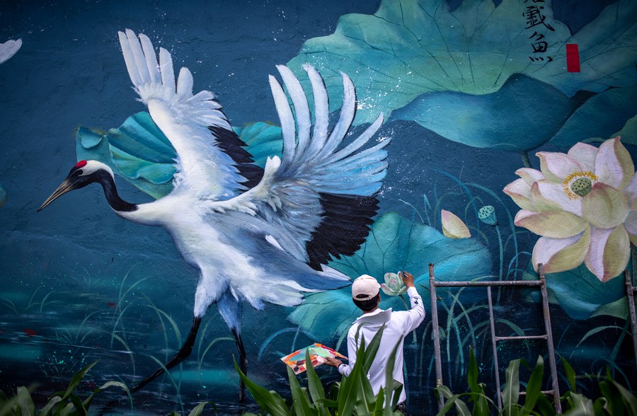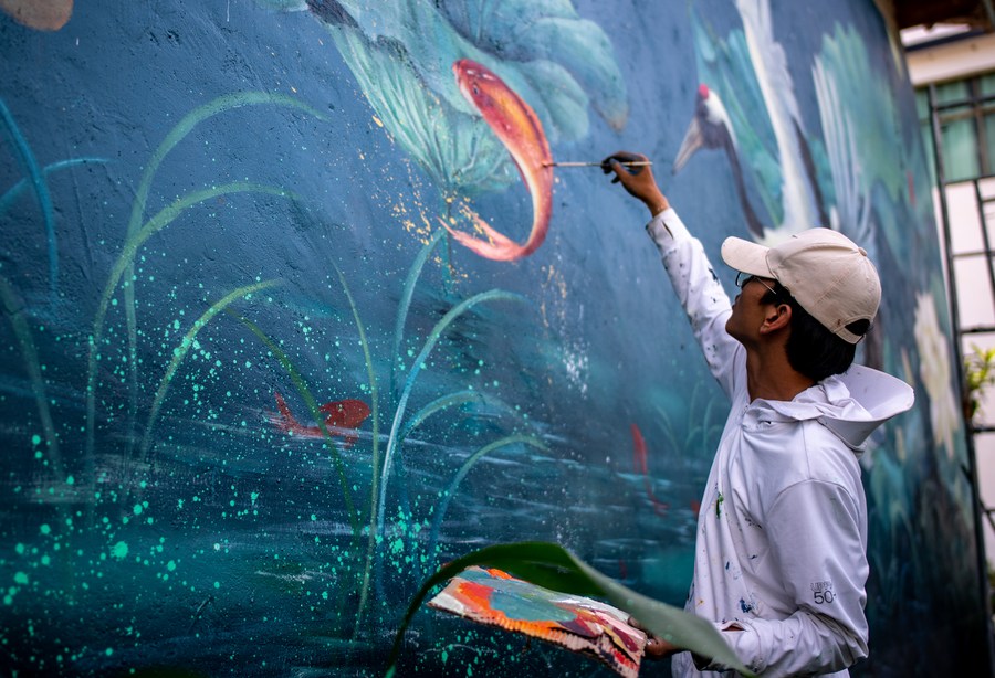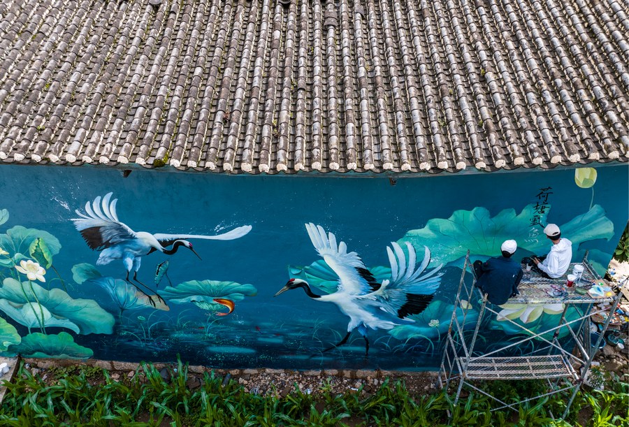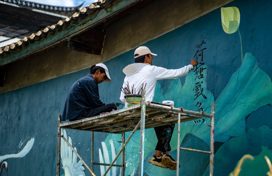 LIJIANG, June 27 (Xinhua) -- A "post-95s" wall painter, hailing from Yongsheng County of Lijiang City in southwest China's Yunnan Province, gained popularity both among villagers in his hometown and netizens on social media platforms.