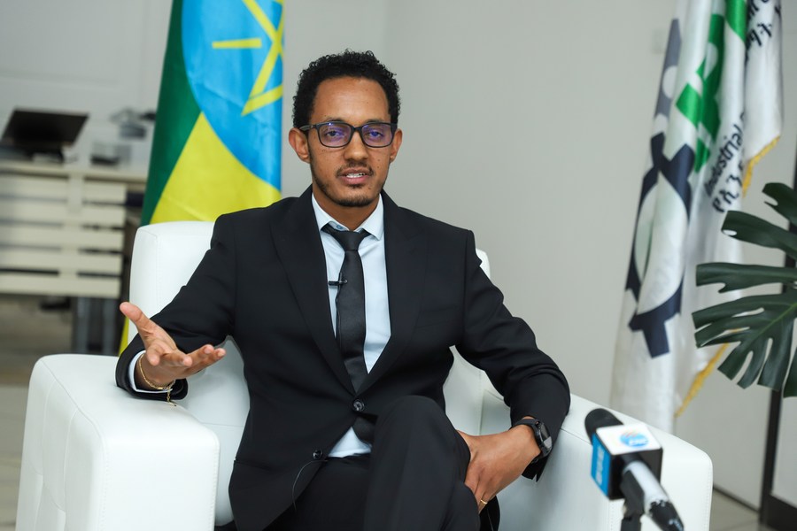 Sandokan Debebe, CEO of Ethiopia's Industrial Parks Development Corporation (IPDC), speaks during an interview with Xinhua in Addis Ababa, Ethiopia, on June 8, 2022. (Xinhua/Michael Tewelde)