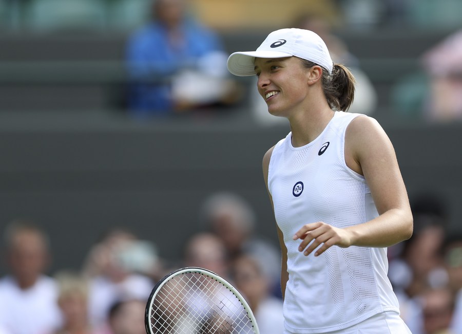 LONDON, June 30 (Xinhua) -- World No.1 Iga Swiatek from Poland needed more than two hours to pass lucky loser Lesley Pattinama Kerkhove on Thursday, reaching the last 32 in the women's singles at the Wimbledon Championships.