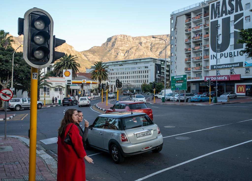 People wait to cross a road during a power cut in Cape Town, South Africa, on June 28, 2022. (Xinhua/Lyu Tianran)