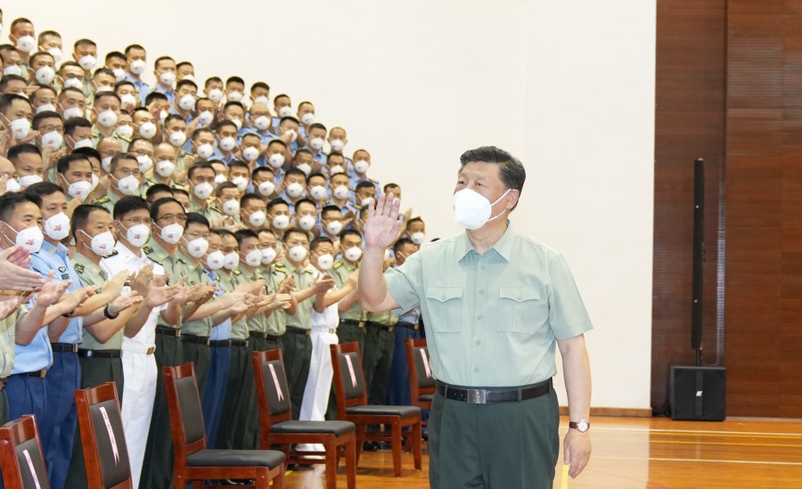 Chinese President Xi Jinping, also general secretary of the Communist Party of China Central Committee and chairman of the Central Military Commission, inspects the Chinese People's Liberation Army (PLA) Garrison in the Hong Kong Special Administrative Region, south China, July 1, 2022. (Xinhua/Li Gang)