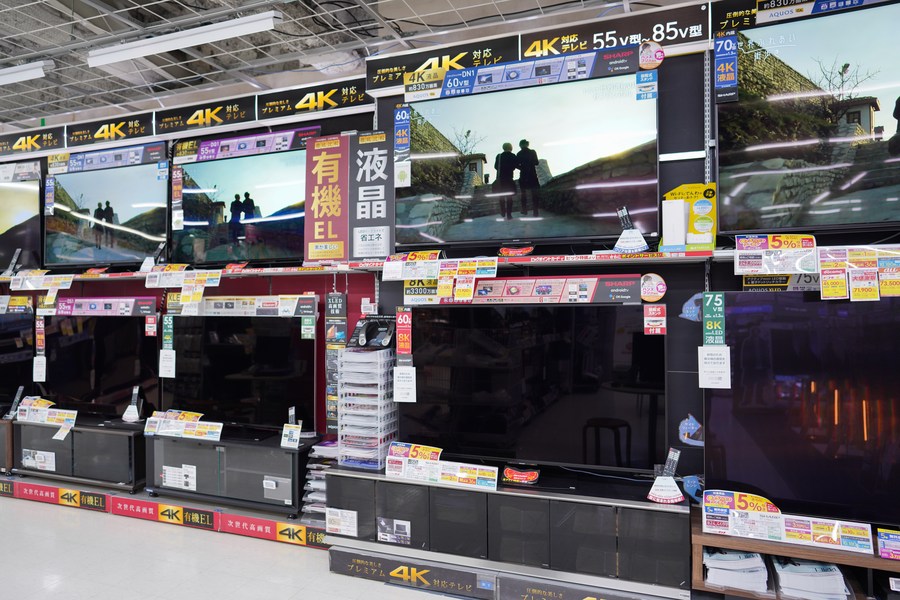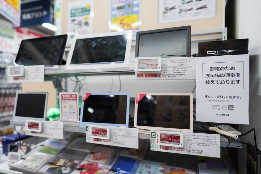 Some display devices are turned off to save power at a supermarket in Tokyo, Japan, on March 22, 2022. (Xinhua/Zhang Xiaoyu)