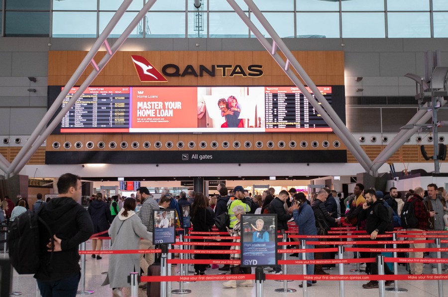 Photo taken on July 1, 2022, shows passengers at Sydney Airport in Sydney, Australia. (Photo by Hu Jingchen/Xinhua)