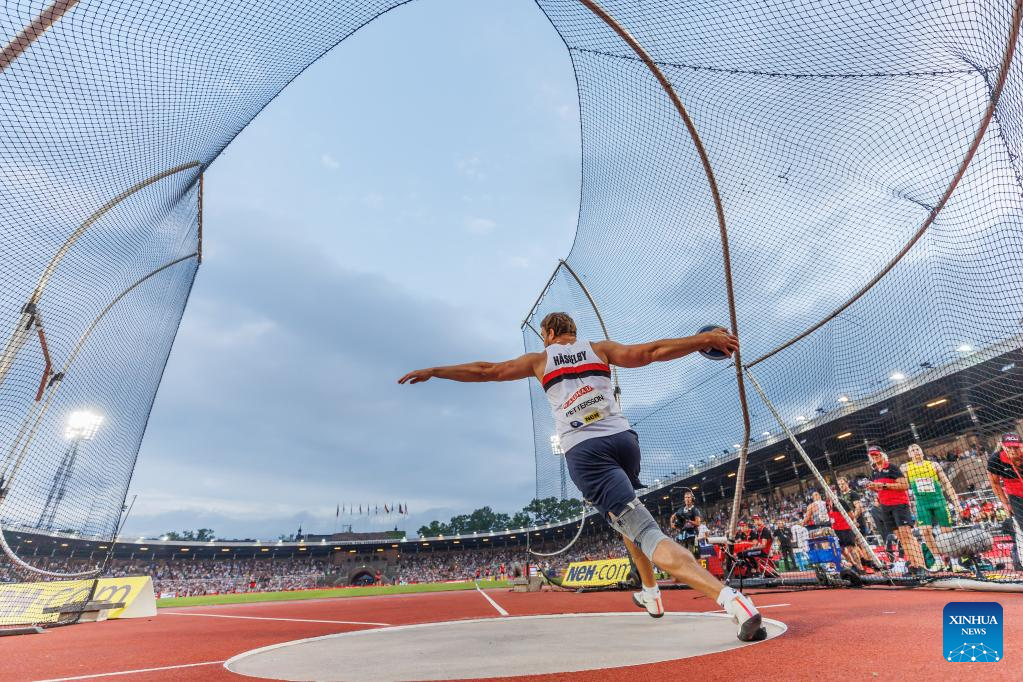 Sweden's Simon Pettersson competes during men's discus throw at the Diamond League athletics meeting in Stockholm, Sweden, June 30, 2022. (Photo by Wei Xuechao/Xinhua)