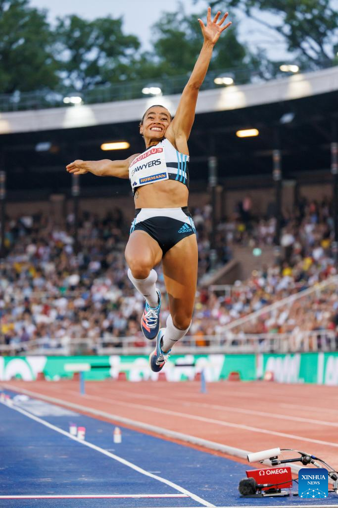 Britain's Jazmin Sawyers competes during women's long jump at the Diamond League athletics meeting in Stockholm, Sweden, June 30, 2022. (Photo by Wei Xuechao/Xinhua)